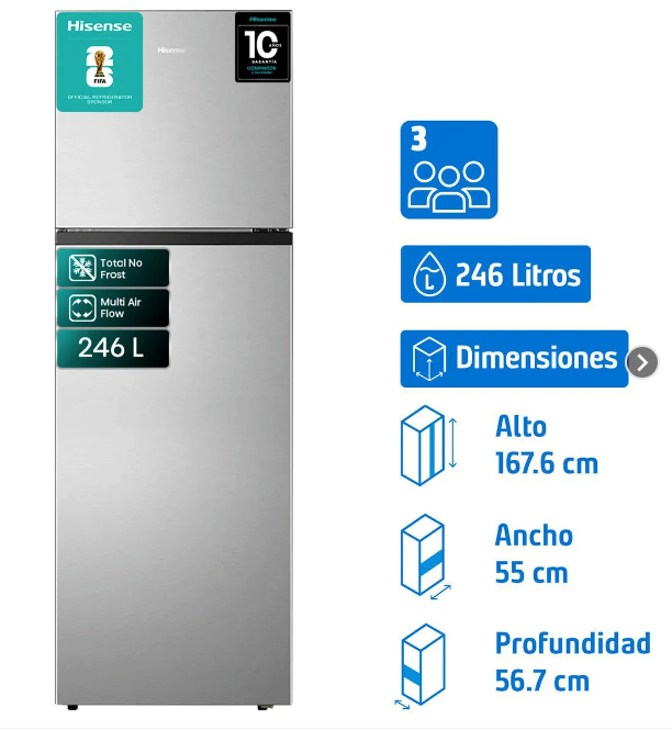 | Capacidad total útil | 246 l |